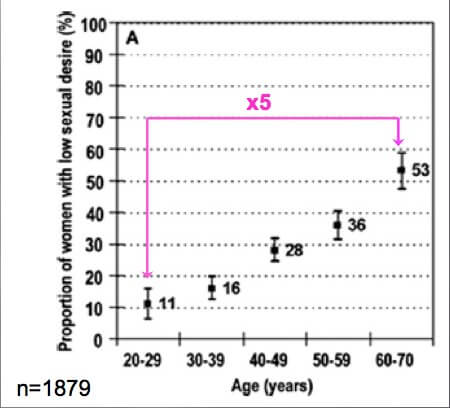 Souffrance psychologique des femmes ayant une baisse de desir sexuel en Europe. Hayes. Sexual desire and aging. Fertil Steril 2007.
