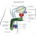 L’appareil sexuel masculin comporte : le pénis formé par 2 corps caverneux et un corps spongieux traversé par l’urètre ; les 2 testicules, enveloppées par le scrotum ; les voies excrétrices représentées d’un côté par l’urètre qui traverse le corps spongieux de la verge ainsi que la prostate, et de l’autre côté par les canaux déférents dans les testicules qui se poursuivent par les canaux éjaculateurs qui traversent eux aussi la prostate pour se jeter dans l’urètre ; les glandes annexes constituées des vésicules séminales, de la prostate et des glandes bulbo-urétrales de Mery-Cowper ; les organes génitaux externes représentés par la verge, et le scrotum.