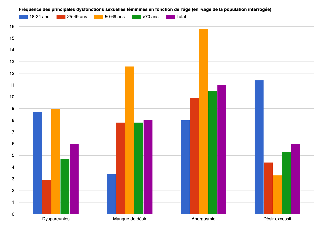 | Manque de désir | 3,40% | 7,80% | 12,60% | 7,80% | 8% |