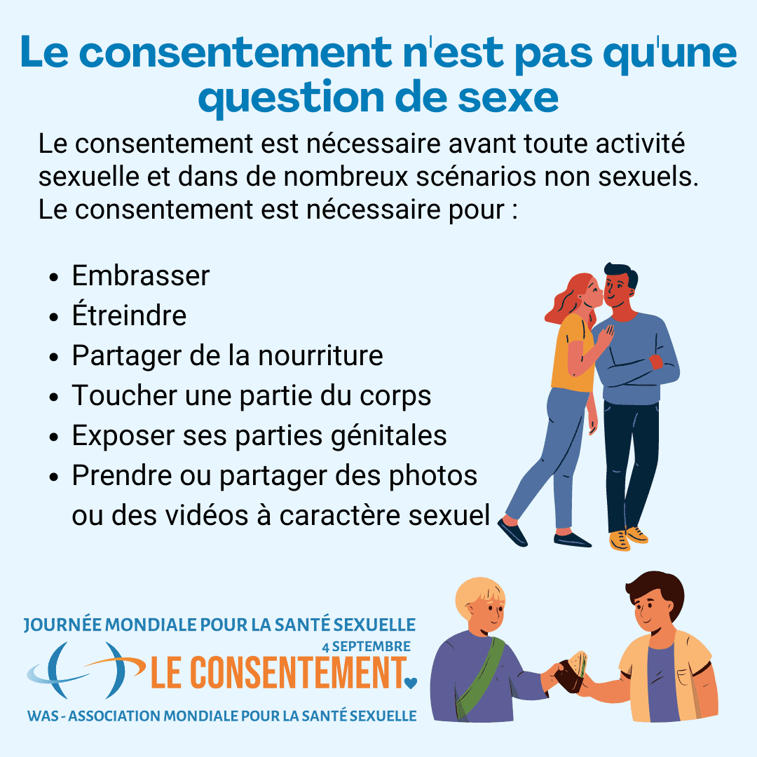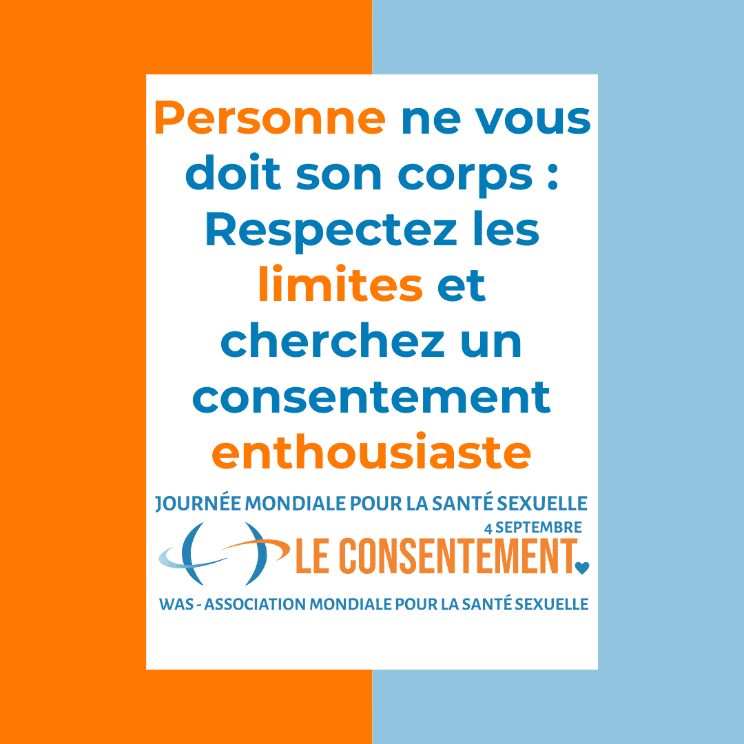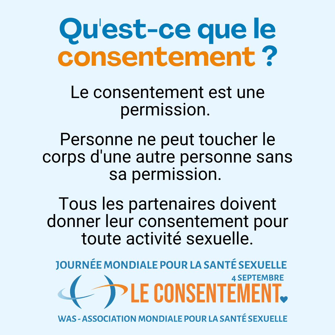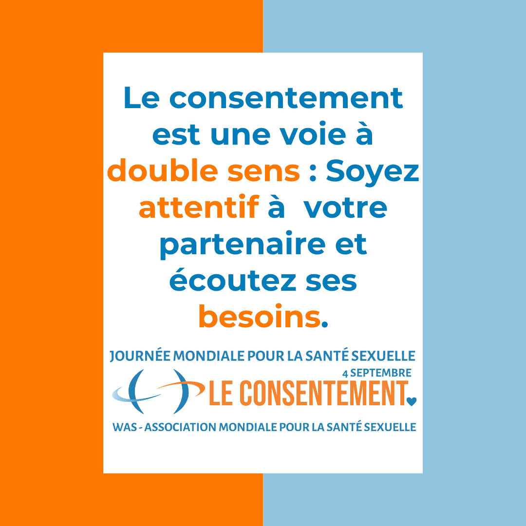 Aujourd’hui est une journée spéciale. Le 4 septembre marque la Journée mondiale de la santé sexuelle (WSHD), un événement organisé par la World Association for Sexual Health (WAS). Cette année, le thème est le « Consentement », un sujet essentiel pour comprendre et promouvoir une sexualité saine et respectueuse.