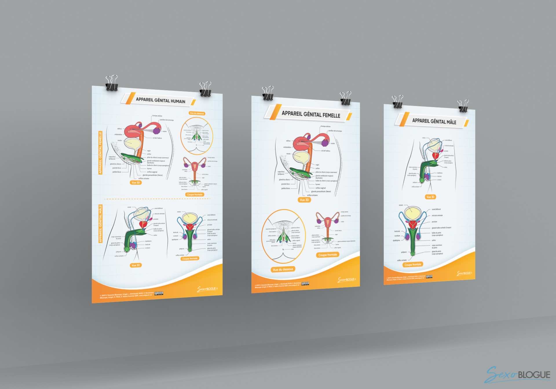 L’Université de Genève, aidée par le Bioscope, les Hôpitaux Universitaires de Genève, le DIP et Odile Fillod ont développé des planches anatomiques des organes génitaux qui ont la particularité :
