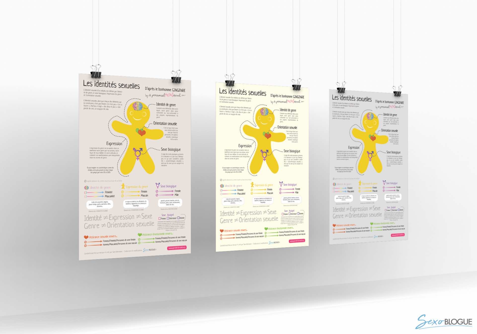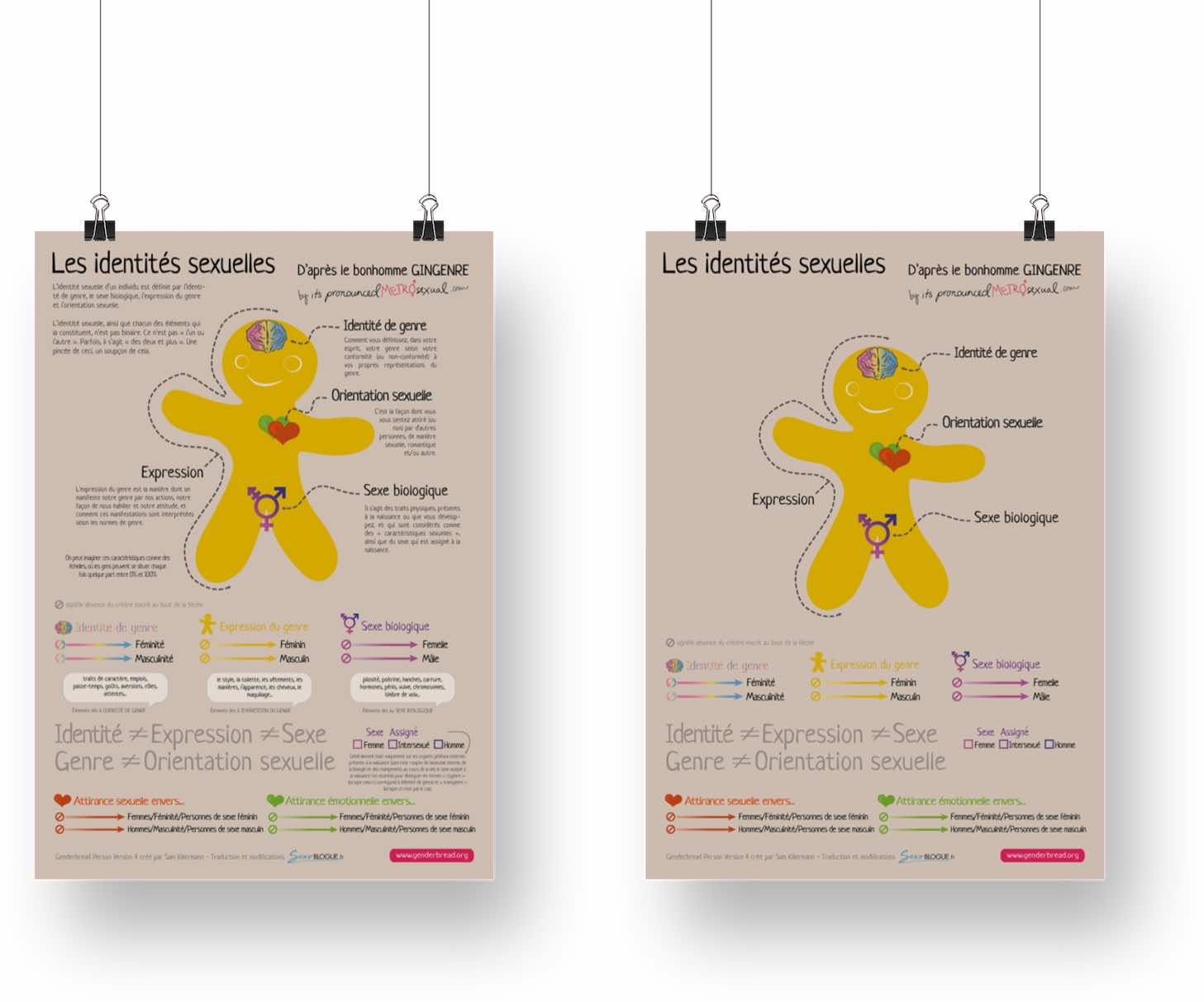 Ce petit bonhomme de pain d’épice (Gingerbread en anglais), basé sur le travail de Sam Killerman, est particulièrement apprécié pour aborder le sujet des identités sexuelles ainsi que les concepts de genre, d’orientation, d’expression du genre, de sexe biologique, de sexe assigné etc…