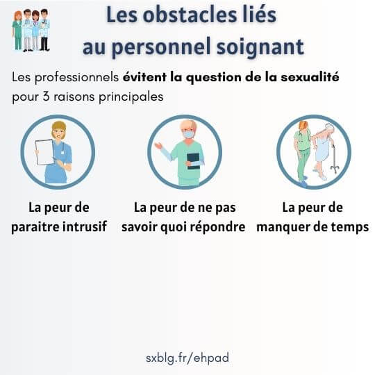 Par ailleurs, on constate du côté des professionnels un évitement de la question de la sexualité. Cette crainte d’aborder le sujet s’explique par plusieurs raisons :