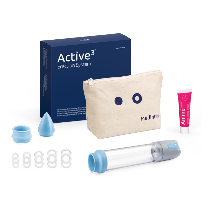 La pompe à vide pénienne de Medintim est un dispositif médical provoquant un afflux de sang dans les corps caverneux du pénis afin de créer une érection.